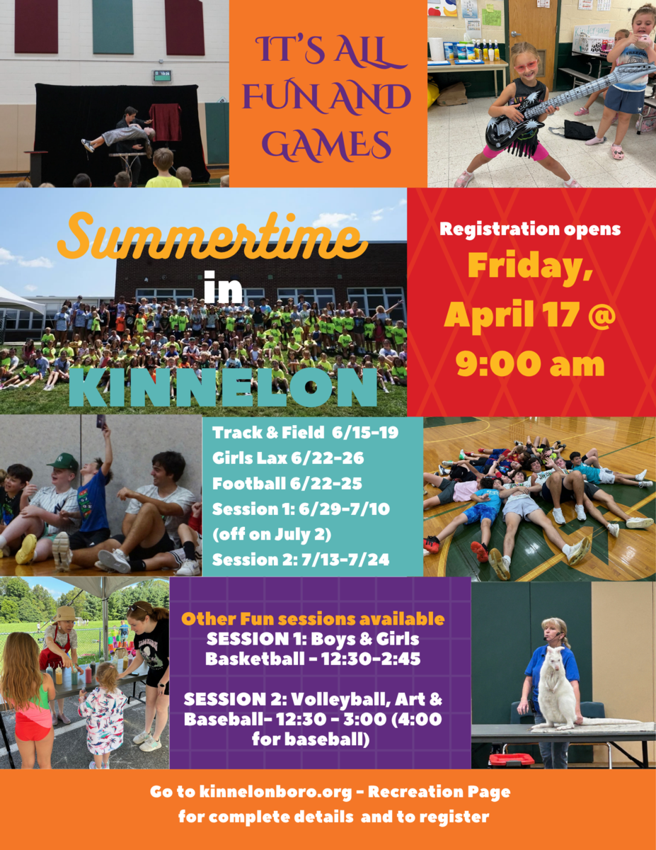 Summer Camp in Kinnelon Registration is open. Make sure all of your information is correct in your community pass account, including your son/daughter's grade and date of birth.